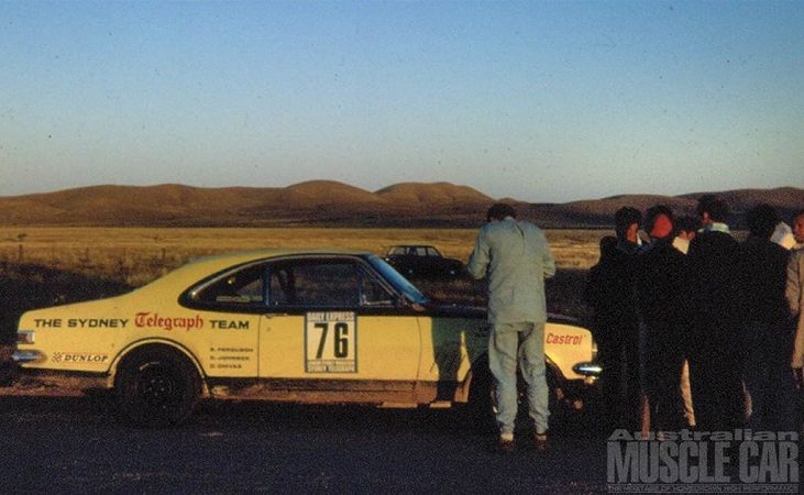 The David McKay Monaro failed to finish the marathon following a roll over in a sand dune stage near Broken Hill. The driver side front pillar was crushed and most panels battered. This had happened while George Reynolds was driving who upon arrival in Broken Hill received treatment in the Hospital with advice not to continue. This disqualified the Monaro from the rally but with a new windscreen the rolled Monaro was still driven to Sydney allowing McKay to watch the finish.